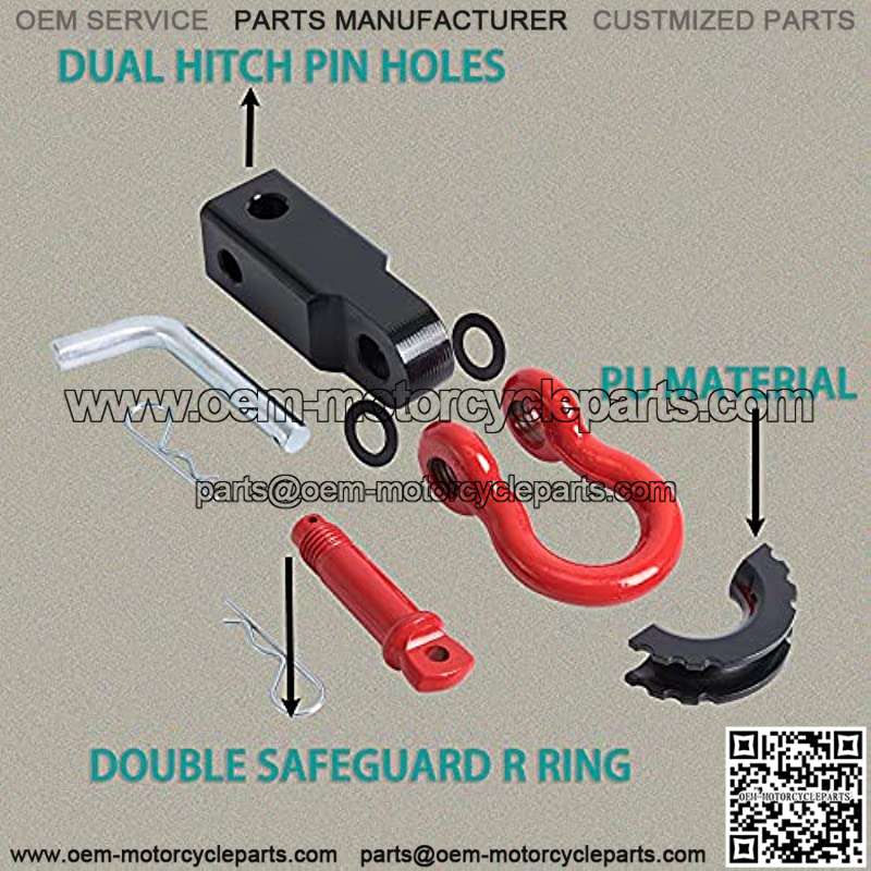 We add an extra R-ring on D-ring Shackle.It can provide extra protection that invoid D-ring missing. A kit of towing accessories come with: mat, Isolation pad, L pins .No need extra purchase. 2″ Shackle Hitch Receiver