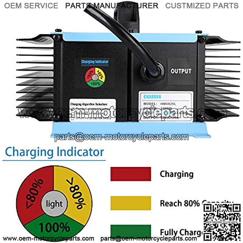[Lightweight and Heat Dissipation Design]: Designed with convenience in mind, the charager weighs in at only 13 lbs and is more than 50% lighter than most OEM and aftermarket golf cart battery chargers, but don??t let the weight fool you. The battery charger is composed of aluminum sheet, surface paint and heat dissipation paint, which is very durable.
