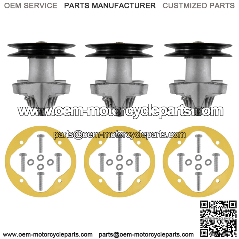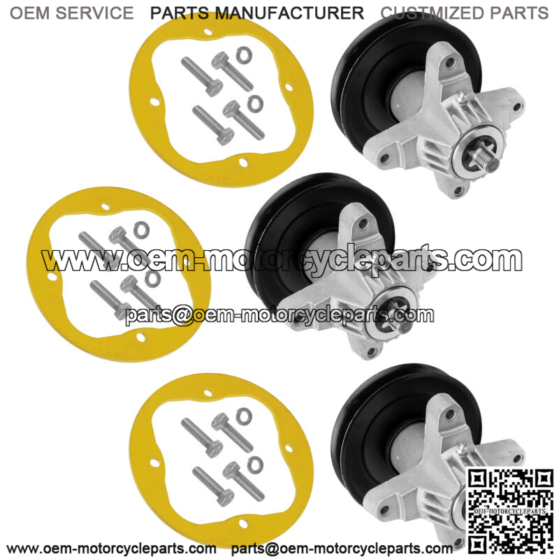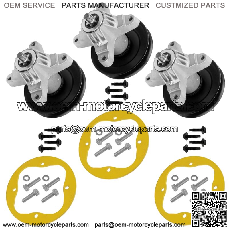 3x Spindle Assembly / w Pulley and Bolts3x Deck Spindle Reinforcement Ring w/ Bolts