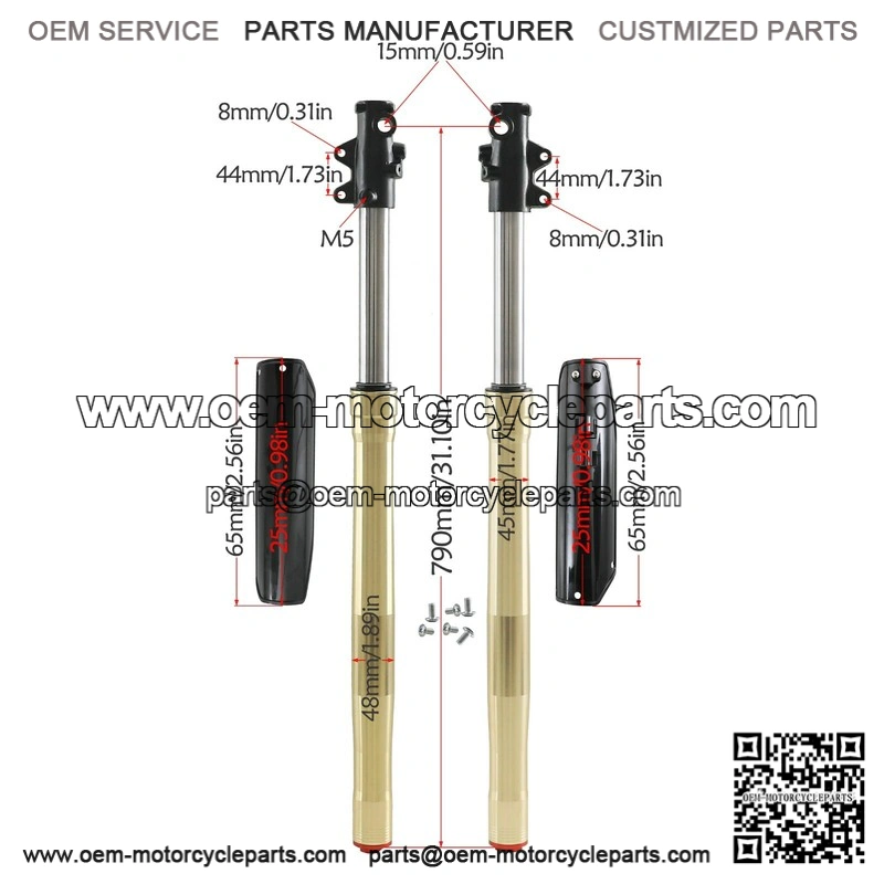 Lower leg diameter: 48mm, Upper leg diameter: 45mm (Triple clamp inner diameter should be 1-1.5mm bigger than this figure)