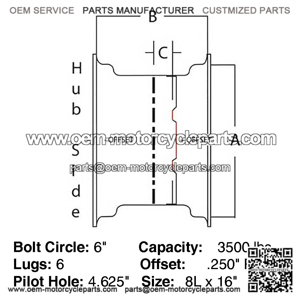 16″ Agricultural Wheel – 3800 lb. capacity – 5/8″ negative offset – Fits all 6 bolt hubs