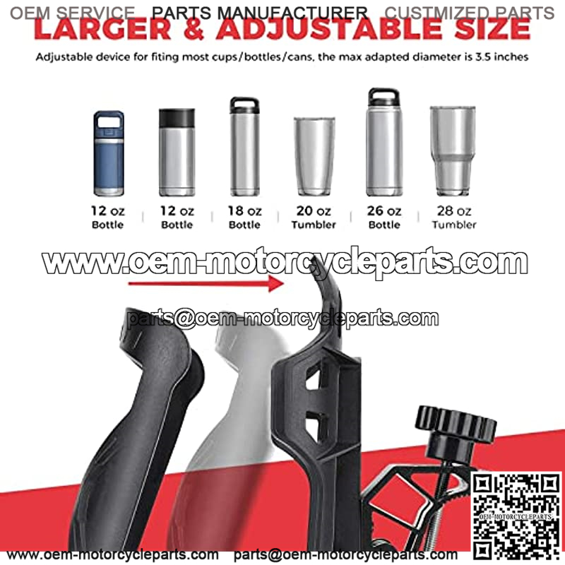 Larger&Adjustable Holder Size 3.5In: The maximum adapted diameter is 3.5 inches. The capacity of the motorcycle cup holder can be manually adjusted at the bottom. Flexible arms allow for different size cups(ordinary water cups/bottles/cans, travel mugs, beverages) and most bluetooth speakers.