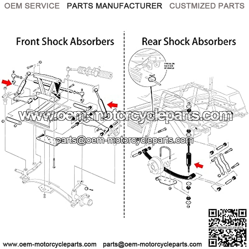 ?Fit For??Front shock absorber fits Club Car DS (8″ x 10-38″) G&E 1981-2007, Precedent gas 2000-up. Rear shock absorber fits Club Car DS electric 1981-up, Gas 1997-up , Precedent G&E 2004-up.