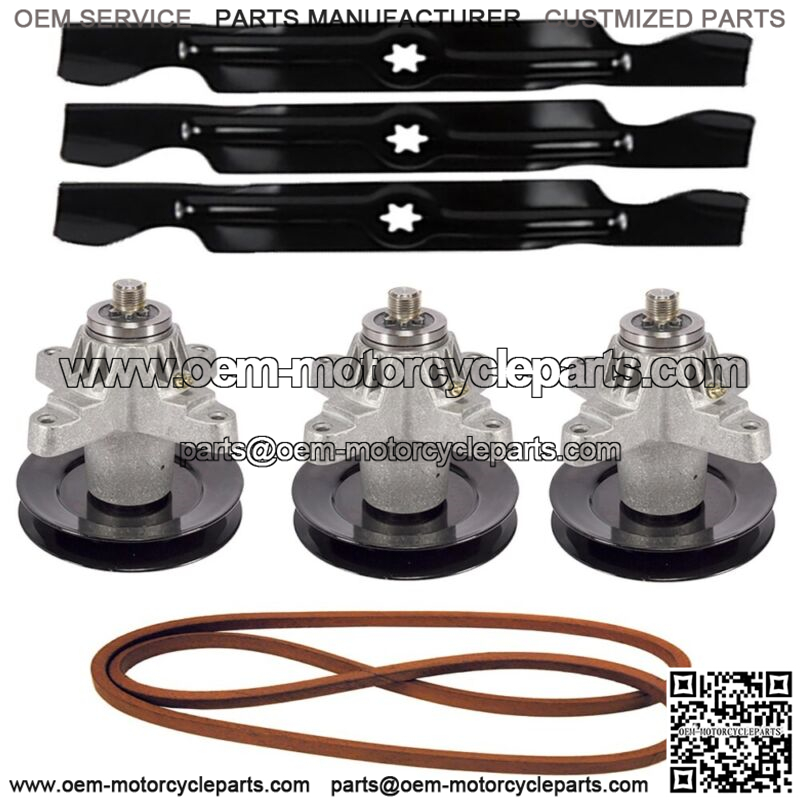 (3) 2-in-1 Mower Blades, (3) Spindle Assemblies, (1) Deck Drive Belt