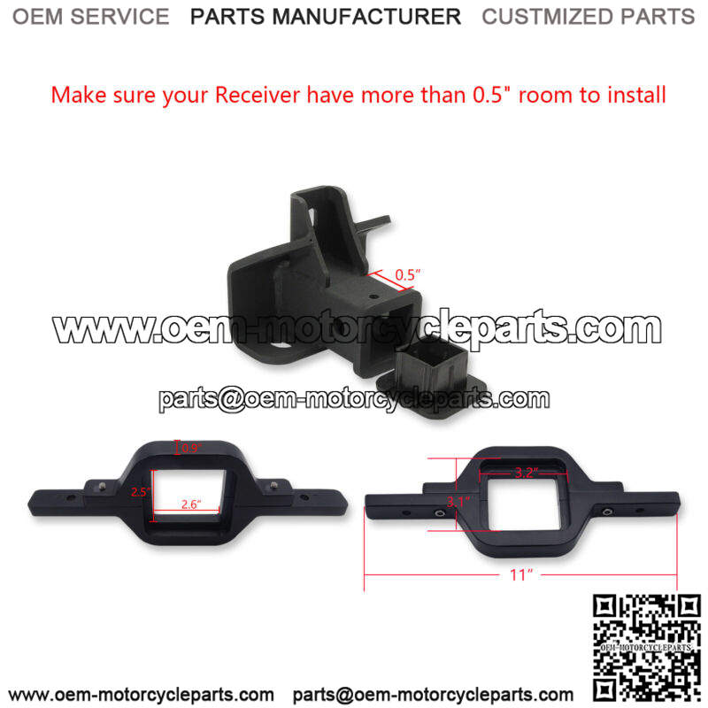 Please make sure you have enough clearance space for installation! You must have at least 18mm (1.8cm/0.7in) of surrounding gap between the tow hitch, bumper, and metal plates in order to fit the tow hitch bracket.