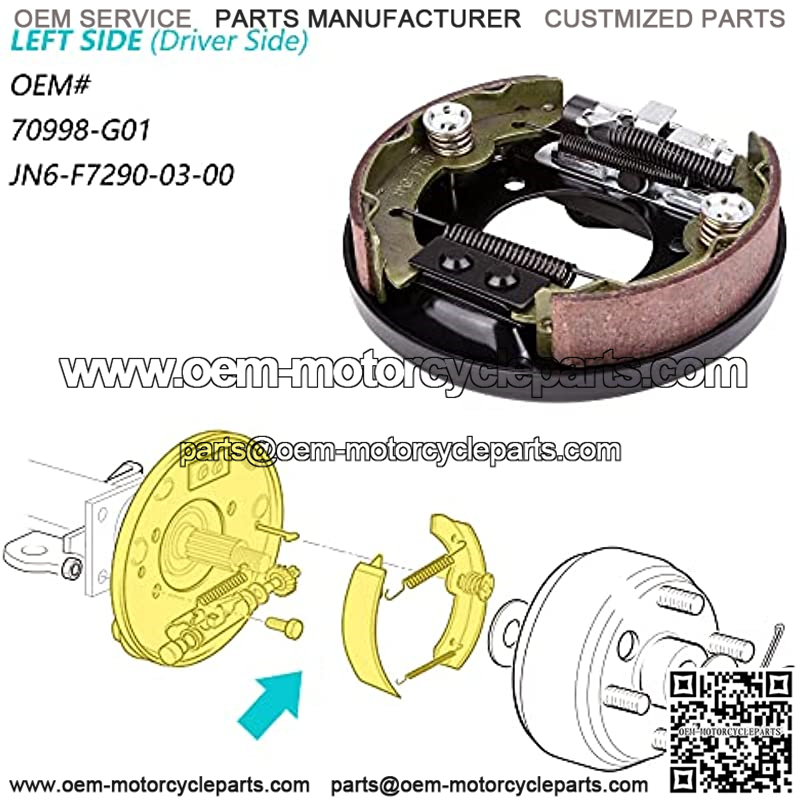 Replaces OEM: 70998-G01, 70998G01, JN6-F7290-03-00, left (driver side), Easy to install, direct replacement without adjusting the brake spring.