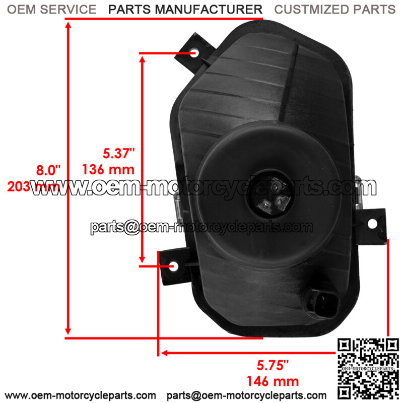 2411143Dimensions:Width : 152mm | 6.0″Height : 203mm | 8.0″Length: 146mm | 5.75″Mounting Hole Distance : 136mm | 5.37″Order Includes: