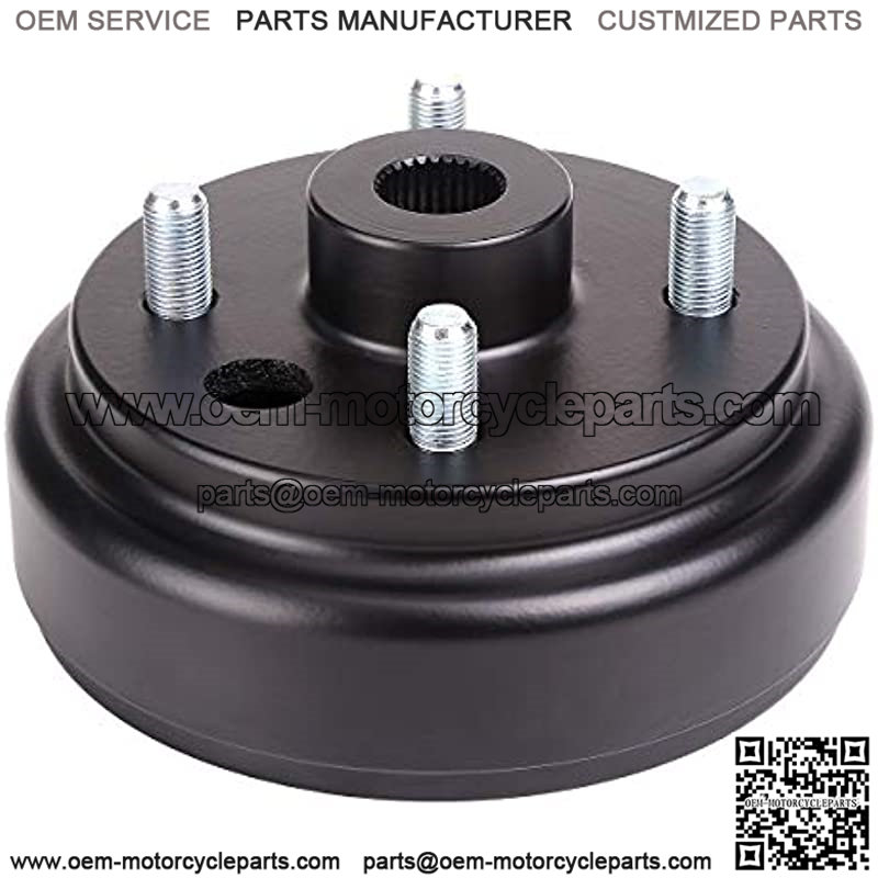 Rear wheel brake drum/hub assembly fits EZGO 1992-up golf cart with 4 Cycle gas engines, 4 lug gas, large hole, fine spline
