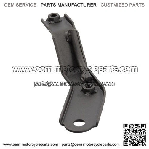 The mudguard bracket on a motorcycle is a support component that secures the mudguard to the motorcycle??s frame or fork. It ensures the mudguard remains in place and properly aligned, providing stability and durability.