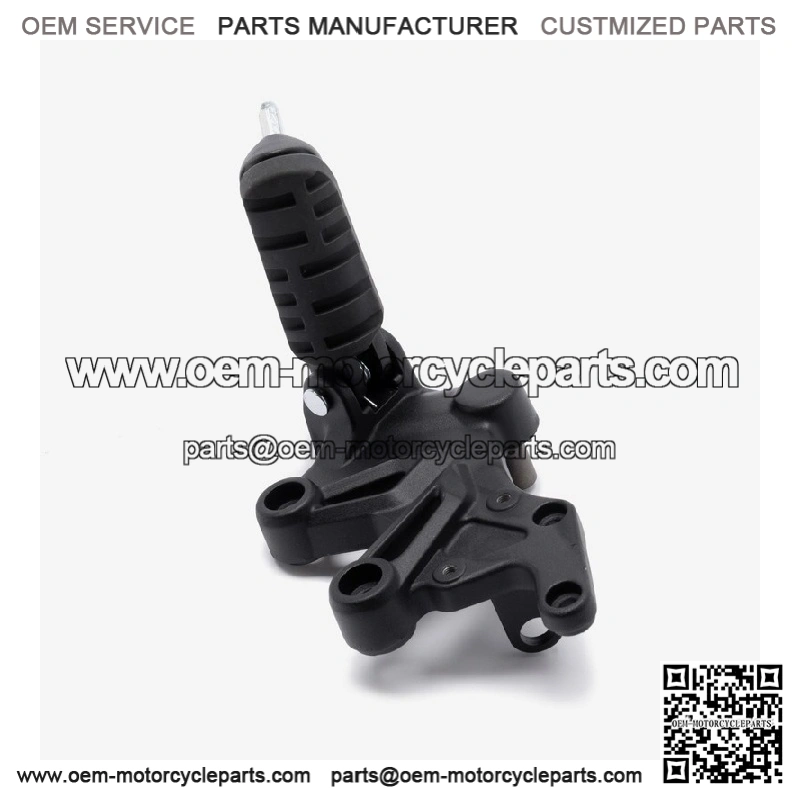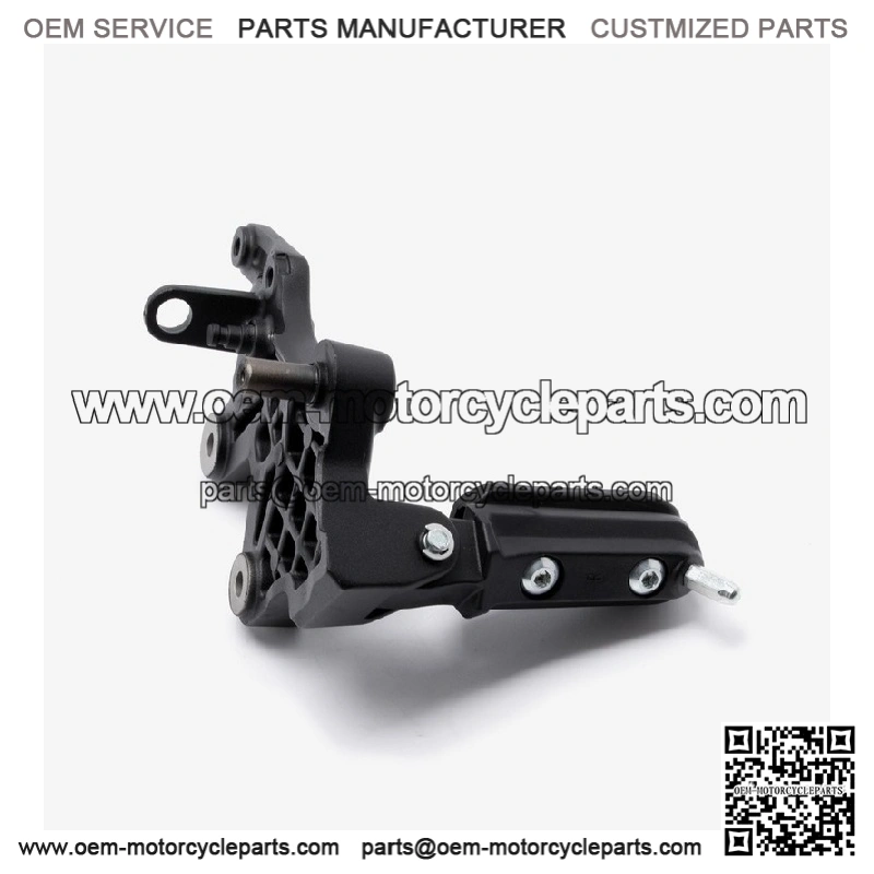 The footpeg with bracket in a motorcycle provides a secure place for the rider’s foot while riding, supporting weight and aiding in balance, with the bracket ensuring proper attachment to the frame.