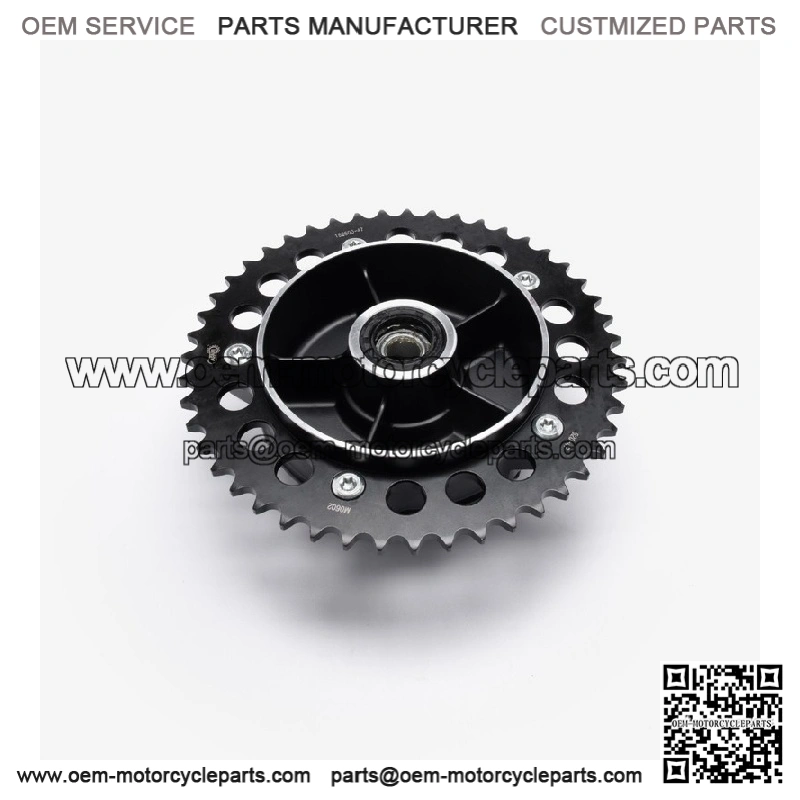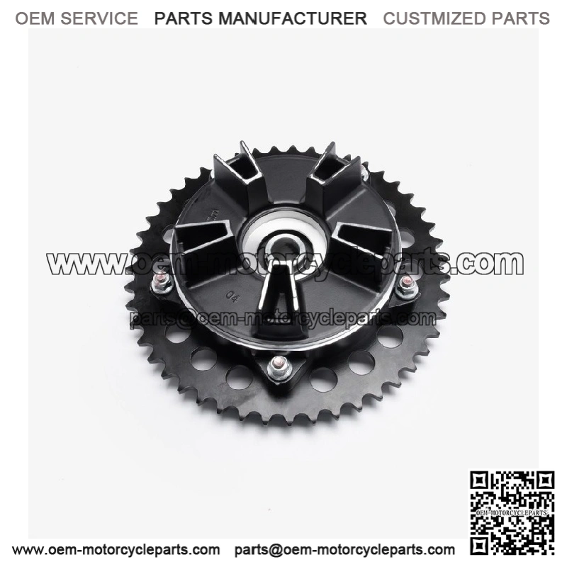 The sprocket hub is a central component that connects the sprocket to the motorcycle’s wheel or drive assembly. It is typically a metal disc or plate with a central mounting area that aligns with the wheel’s hub or drive shaft. The sprocket hub ensures proper alignment and stability of the sprocket, which is crucial for efficient power transfer from the engine to the rear wheel. It may include features for mounting bolts or securing mechanisms and is designed to withstand the forces and vibrations experienced during riding.