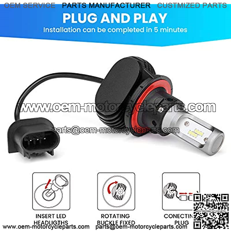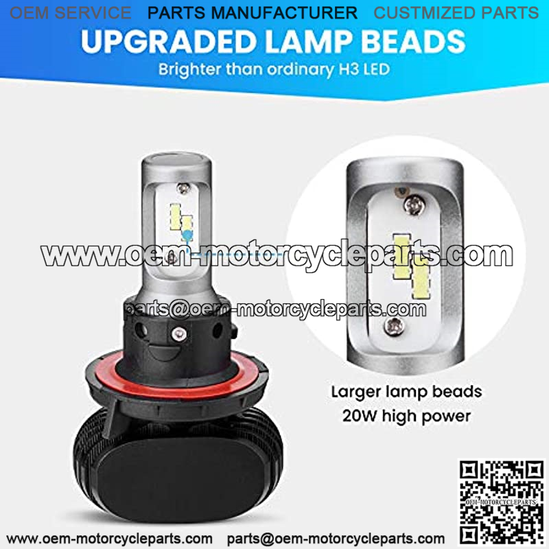 Ugraded brighter LED bulbs : kemimoto upgraded 20W LED headlight bulbs are made with an upgraded CSP1919 chip. This new headlight bulb keeps the function of the high and low beam brighter than the basic H13 LED and has a longer visual field at night.