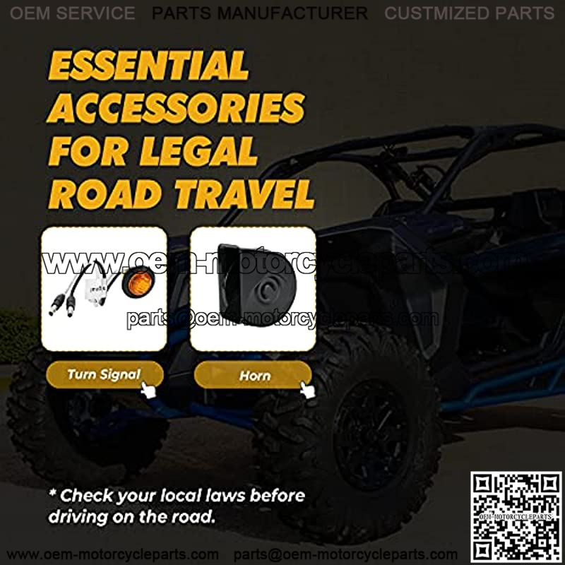 Essential Kit : – Do you know what accessories are necessary for the utv on the road legally Yes, a loud horn and turn signals are essential! This kemimoto turn signal kit includes a horn and four turns signal, you don’t need to buy them separately. Please check your local laws before driving on the road.