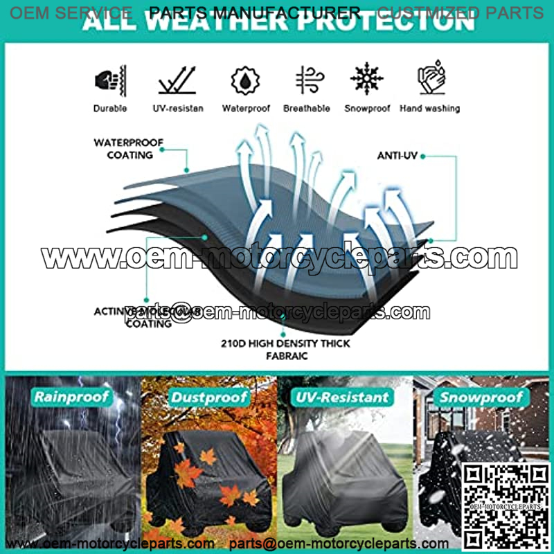 Upgraded with 100% waterproof fabric to protect the UTV against water seepage and wind, with a PU coat to keep sun damage at bay.