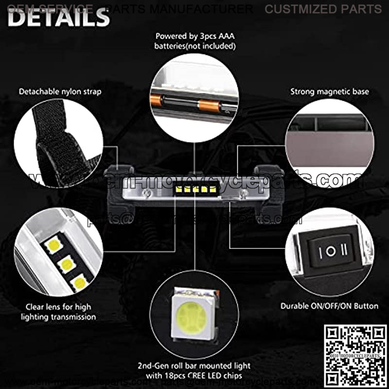 EASY TO INSTALL AND REMOVE – The UTV interior light has strap and magnetic base, quick attachment with the Velcro straps. Insert three AAA batteries (not included), you can mount it anywhere you need, such as square or round roll bar, roll cage, top bar, sun visor, under hood, back rail of the cab, side of the door. Easy to install and remove.