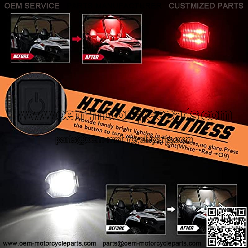 1.2 Color Mode Dome Light: UTV dome light is available in 2 color options, white and red, that meet your different driving demands.The white light is for lighting up your cabin of your cab, while the red is for warning and vision protection.Universal LED dome light has high brightness but low energy consumption to save energy.
