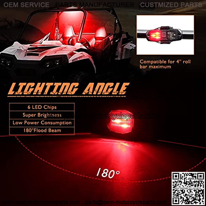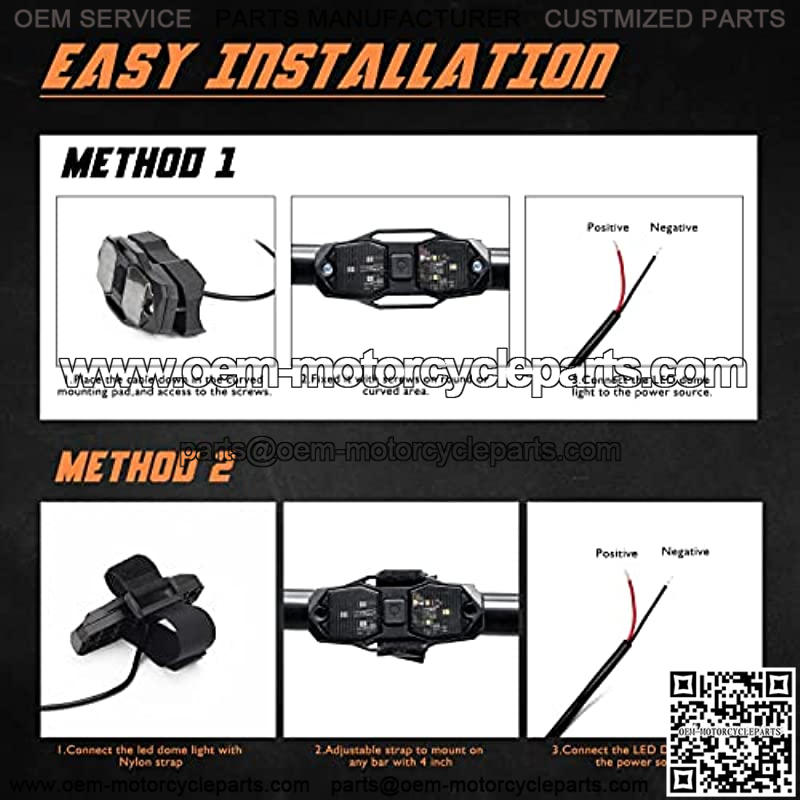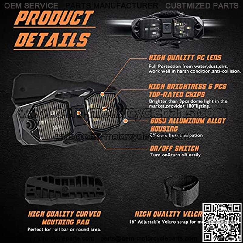 3.Easy to Install: No need to cut and drill,this matching adjustable straps with velcro an curved mounting pad can be installed on the roll bar/roll cage and adapted to most UTV ATV pipe diameters.Lightweight shape and complete installation accessories allow dome light to be installed wherever you like.