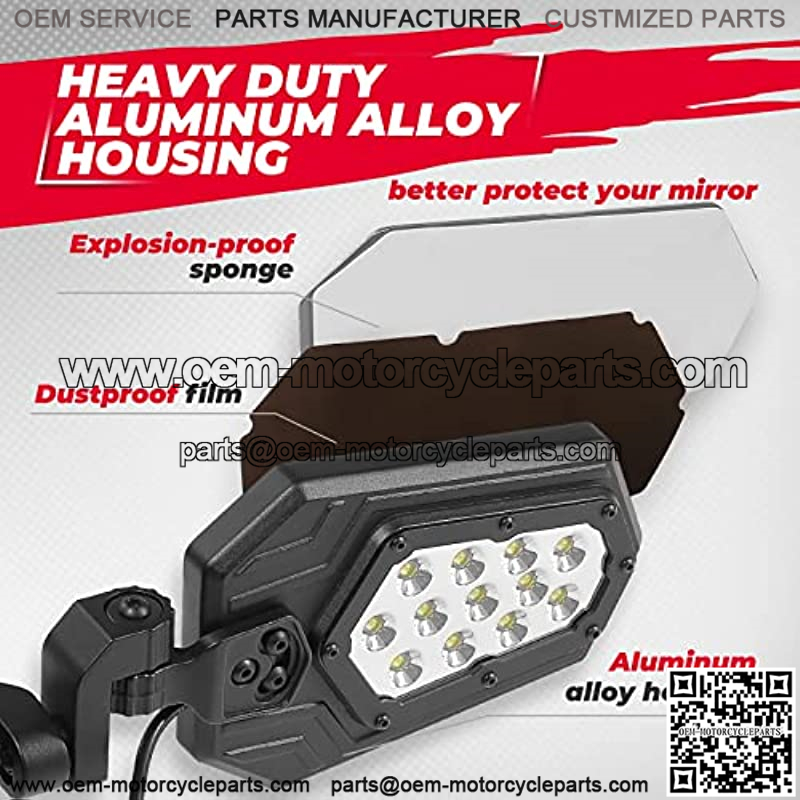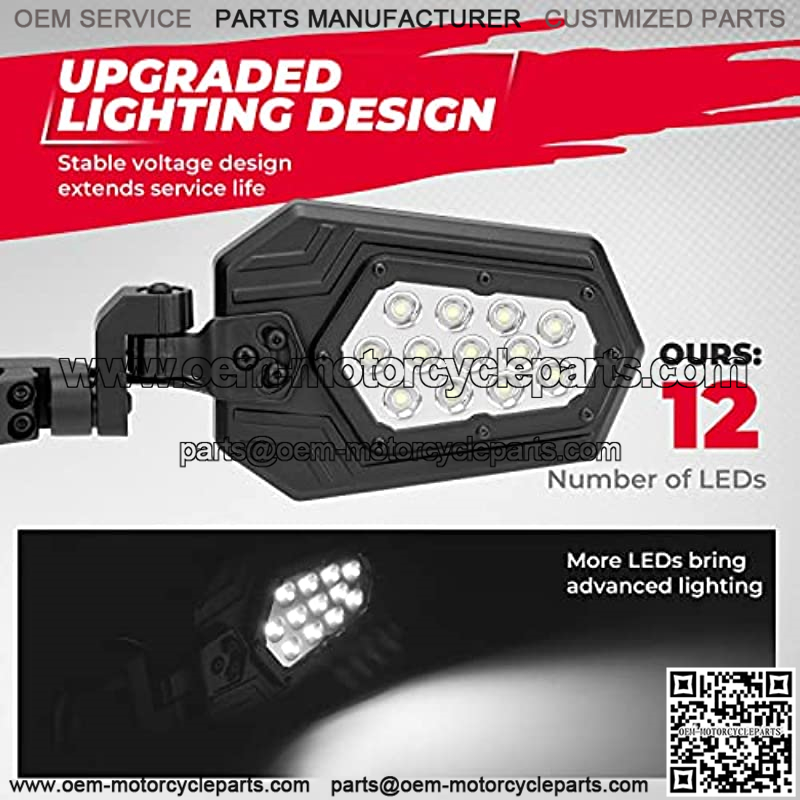 [SUPER BRIGHT LIGHT]: The utv side mirrors are designed with 12 leds, containing a stable current design, which provide you with brighter light and longer life.