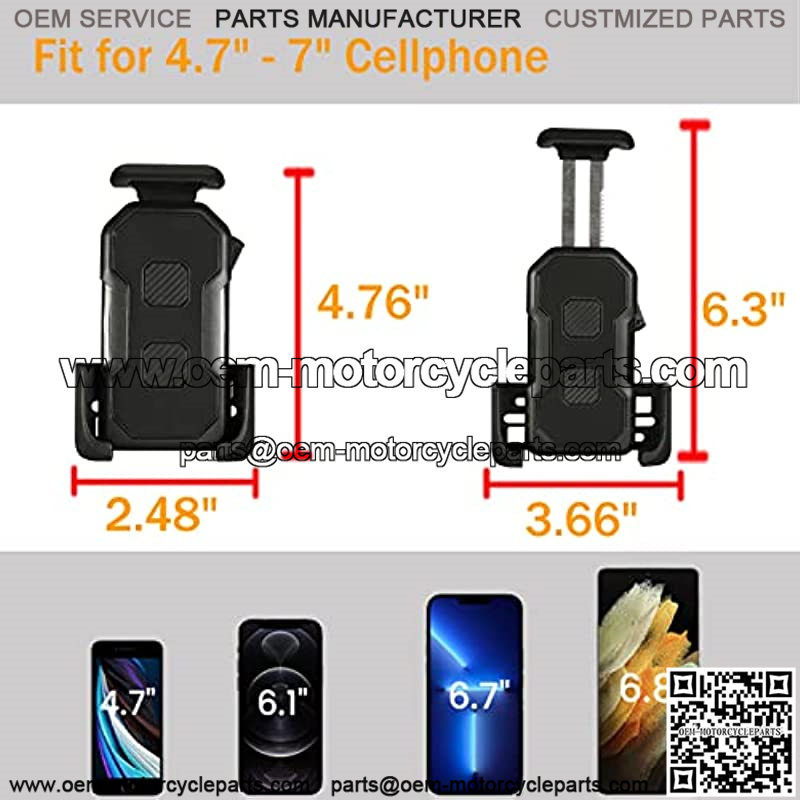 1.Phone Holder: : This UTV phone holder has soft TPU pads and anti-slip glue for all-round wrapping protection. The top is designed with a safety lock. The bottom fixing is to fix the phone tightly on the phone holder by tightening the screws, even if you drive on the bumpy road, it can ensure that the phone will not shake or shift.