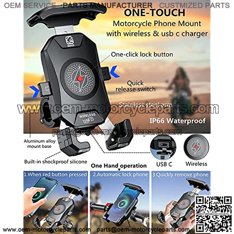 With safe and efficient management system, every unit will be delivered to your hands in well-package and promptly.,Motorcycle phone mount with wireless & USB C charger